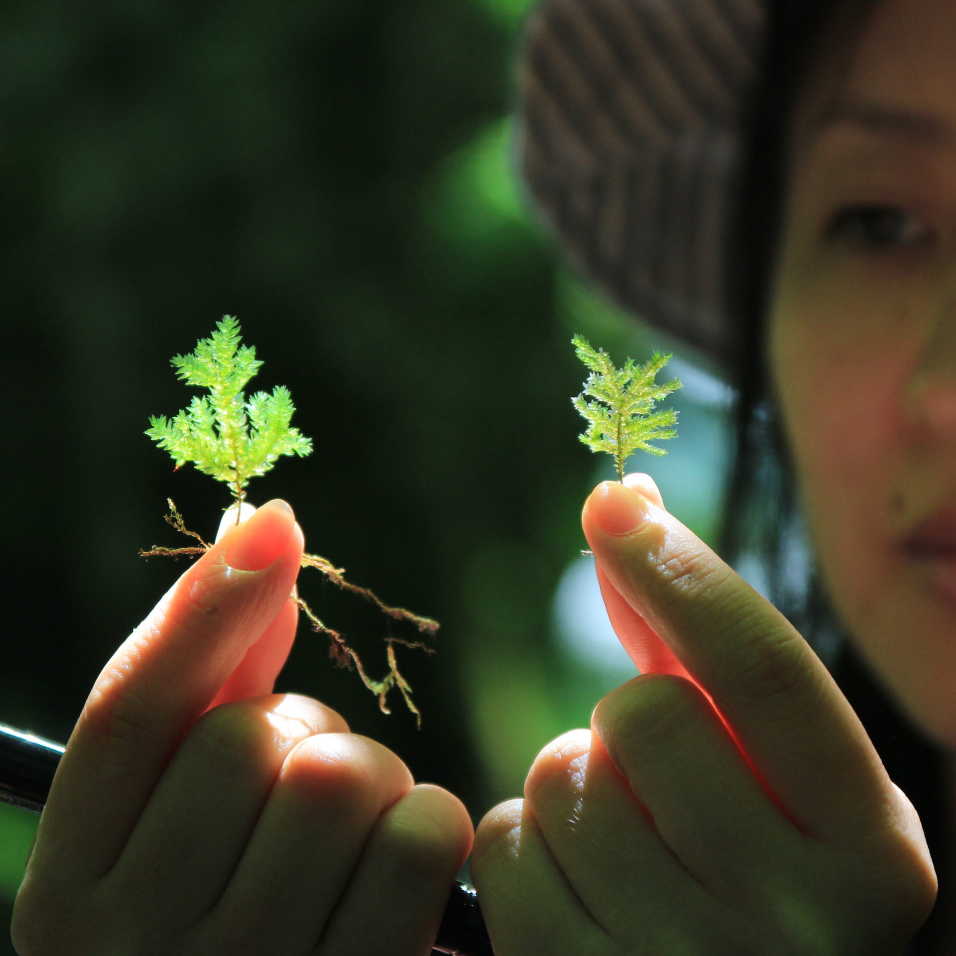 そこからゲストがもっと乗ってきてくるようであれば、今度はルーペで見てもらいましょう。するとまた違う世界が広がってくる。「わー、なにコレ、すごーい」ということになれば、大成功です。「奥入瀬で、とっても綺麗なコケを見てきたよー」という体験。コケの観光利用は、そこが第一歩です。自分がいいと思ったものは、他の人にも教えたくなります。そういう気持を持って頂くことが、いちばん大事なことです。